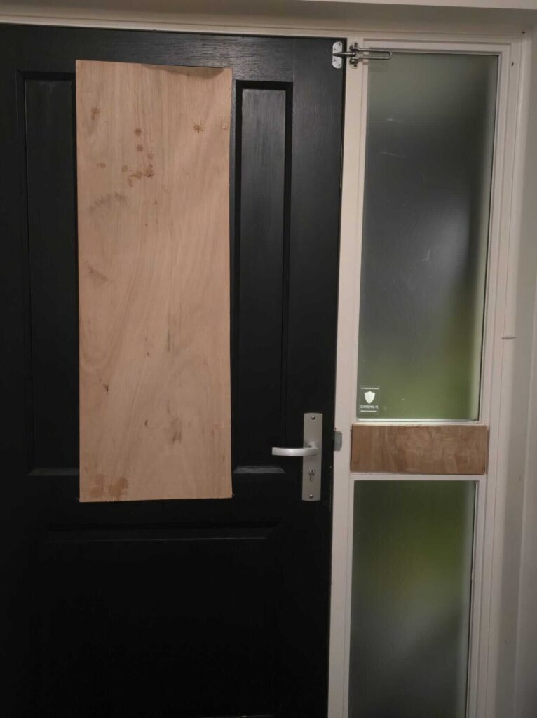 Onze noodvoorziening voor gebroken ramen of deuren omvat: